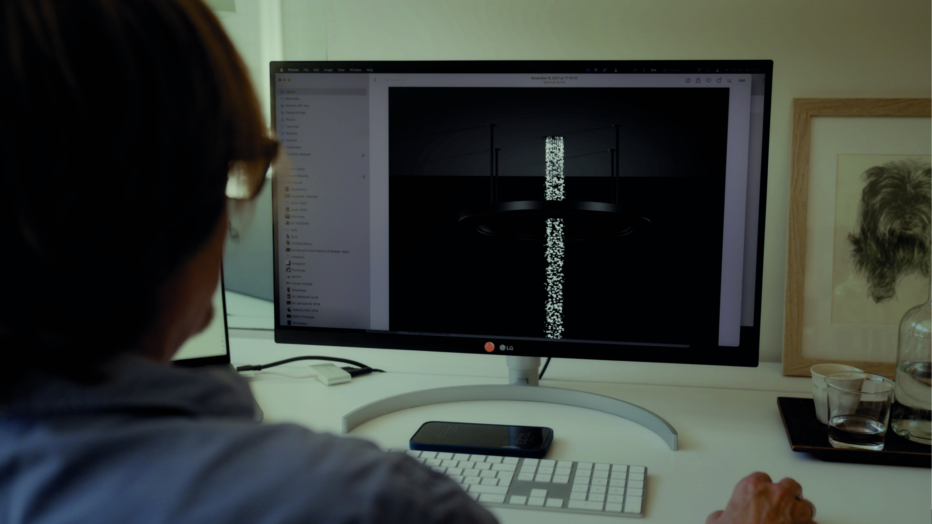 Na casa dos meus pais na Áustria, onde cresci, havia um lustre – um modelo ao estilo gustaviano, um estilo sueco que se inspirava na antiguidade e no classicismo francês. A minha mãe, que também era designer, teve a ideia de acrescentar uma pequena luz no interior da construção impressionante – um anel, quatro velas, uma cortina de cristal afunilada para cima. Assim, a luz brincava com os cristais e originava refrações maravilhosas. Fazia-me lembrar as bolhas na água com gás. Criei uma interpretação contemporânea e minimalista deste lustre para o Aquahalo. O duche em si devia ter um design absolutamente minimalista – apenas a água, o ponto alto do design, devia completar o design do lustre.